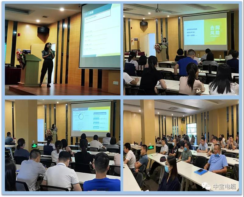 本次培训特别邀请了广东南天明律师事务所陈律师、吴律师担任培训讲师,主要对民典法中合同法律法规讲解培训,公司副总经理邵总、各部门经理、主管及部门代表共40余人参加本次法律知识培训。